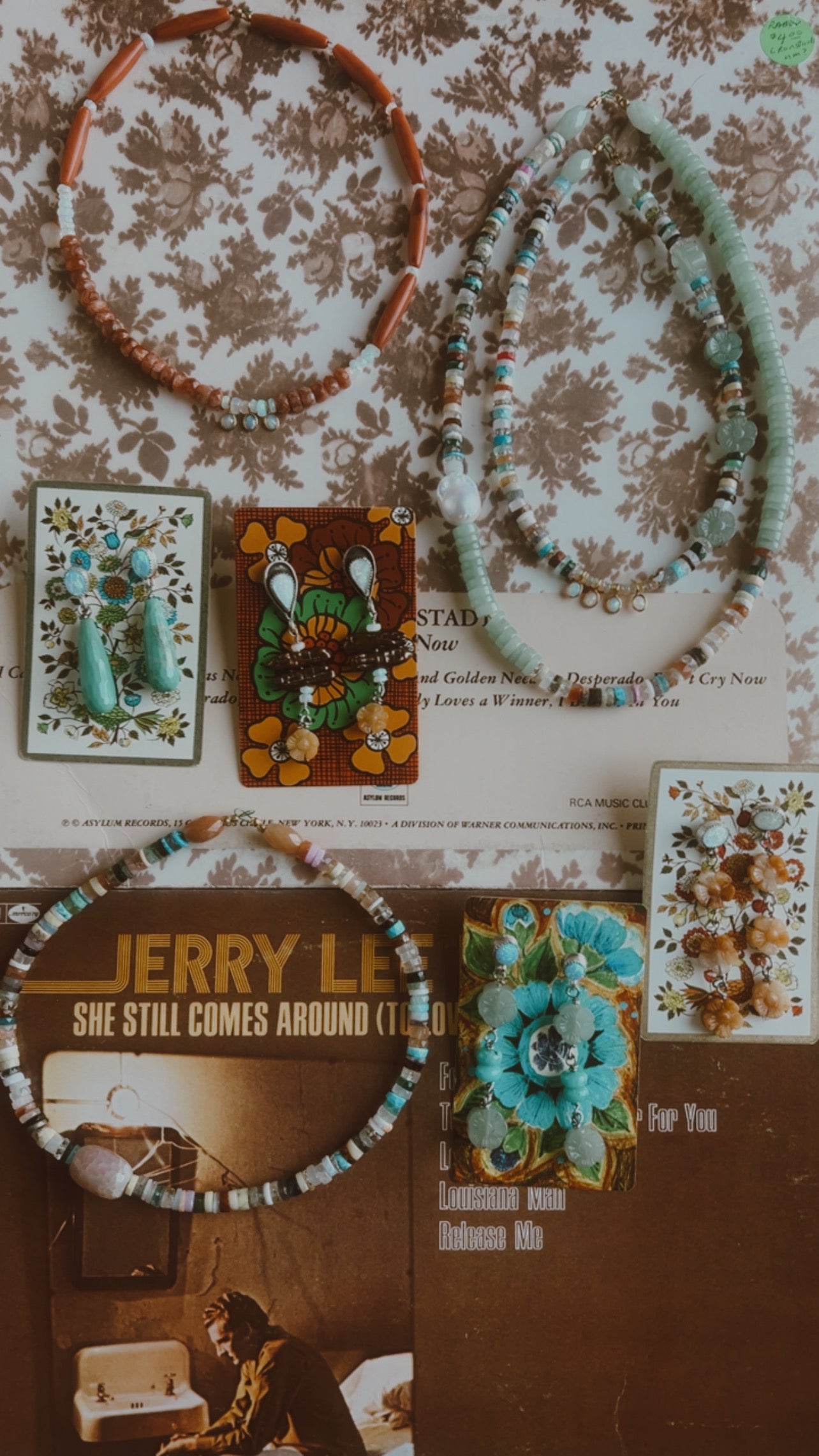 I added the dangles featuring, carved jade, green grass agate, freshwater pearl and authentic Ethiopian opals