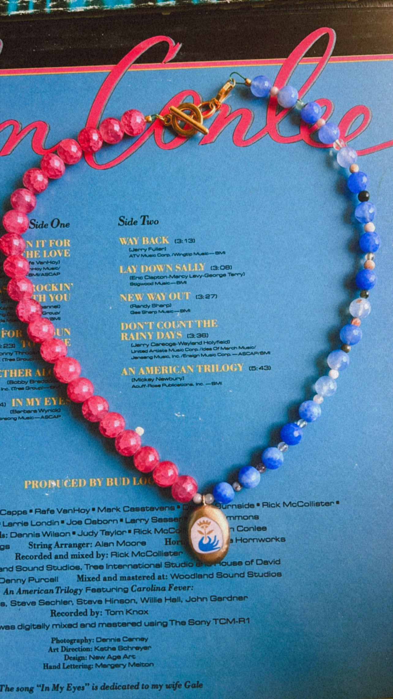 Dyed jade, lapis, Amazonite and glass beads with handmade vintage inspired clay charms
